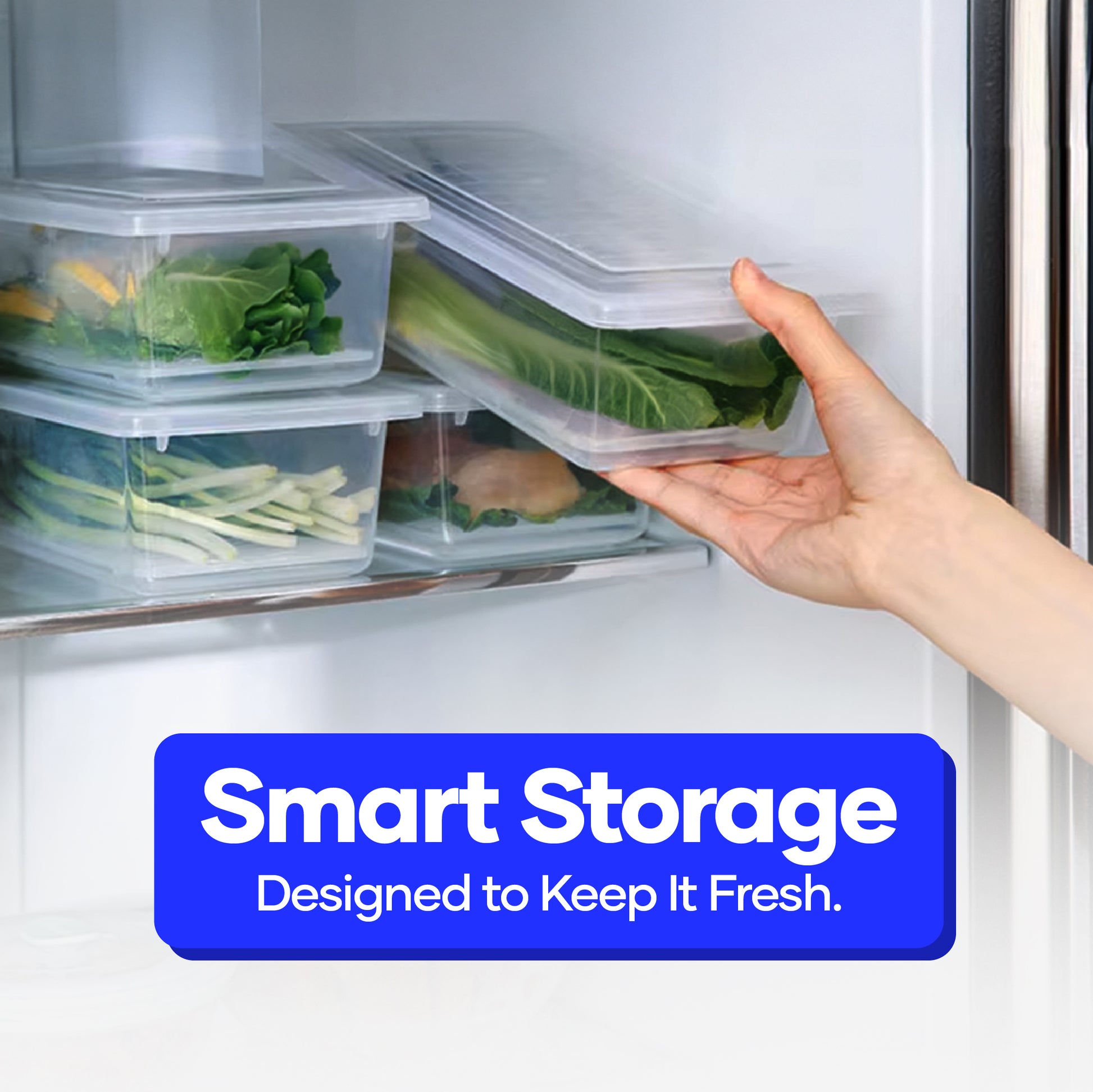 Perfect Size: The fridge storage containers have a 1500 ML capacity and dimensions of 29 x 12 x 7 cm. These containers for kitchen use in the refrigerator, freezer, pantry, cabinets, and kitchen.