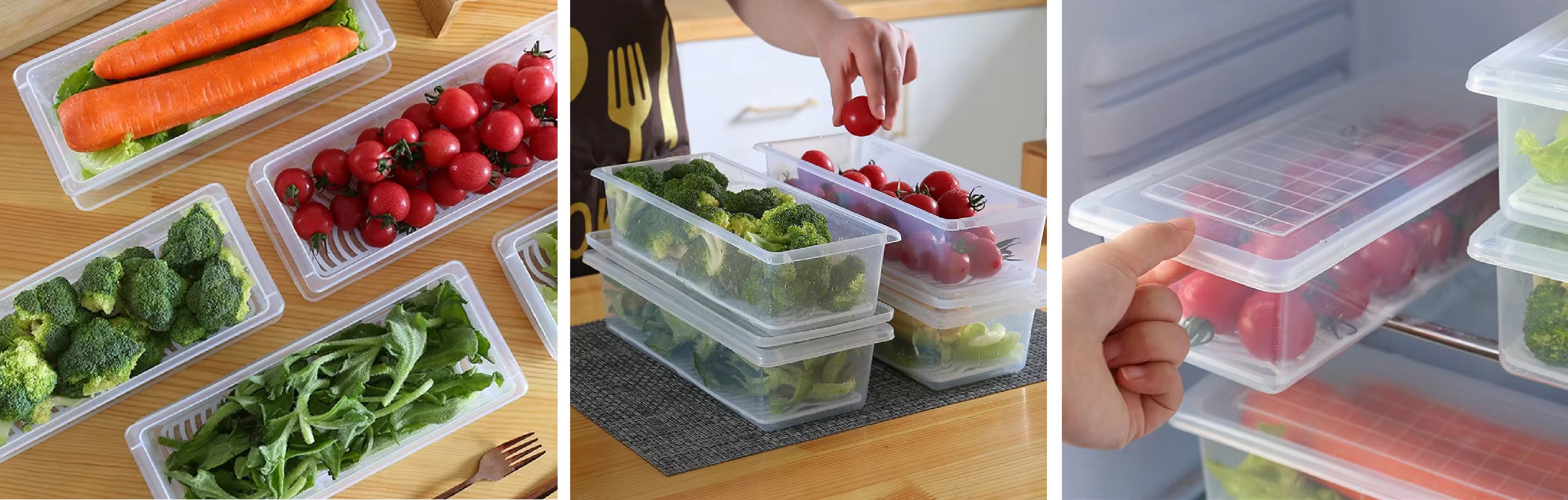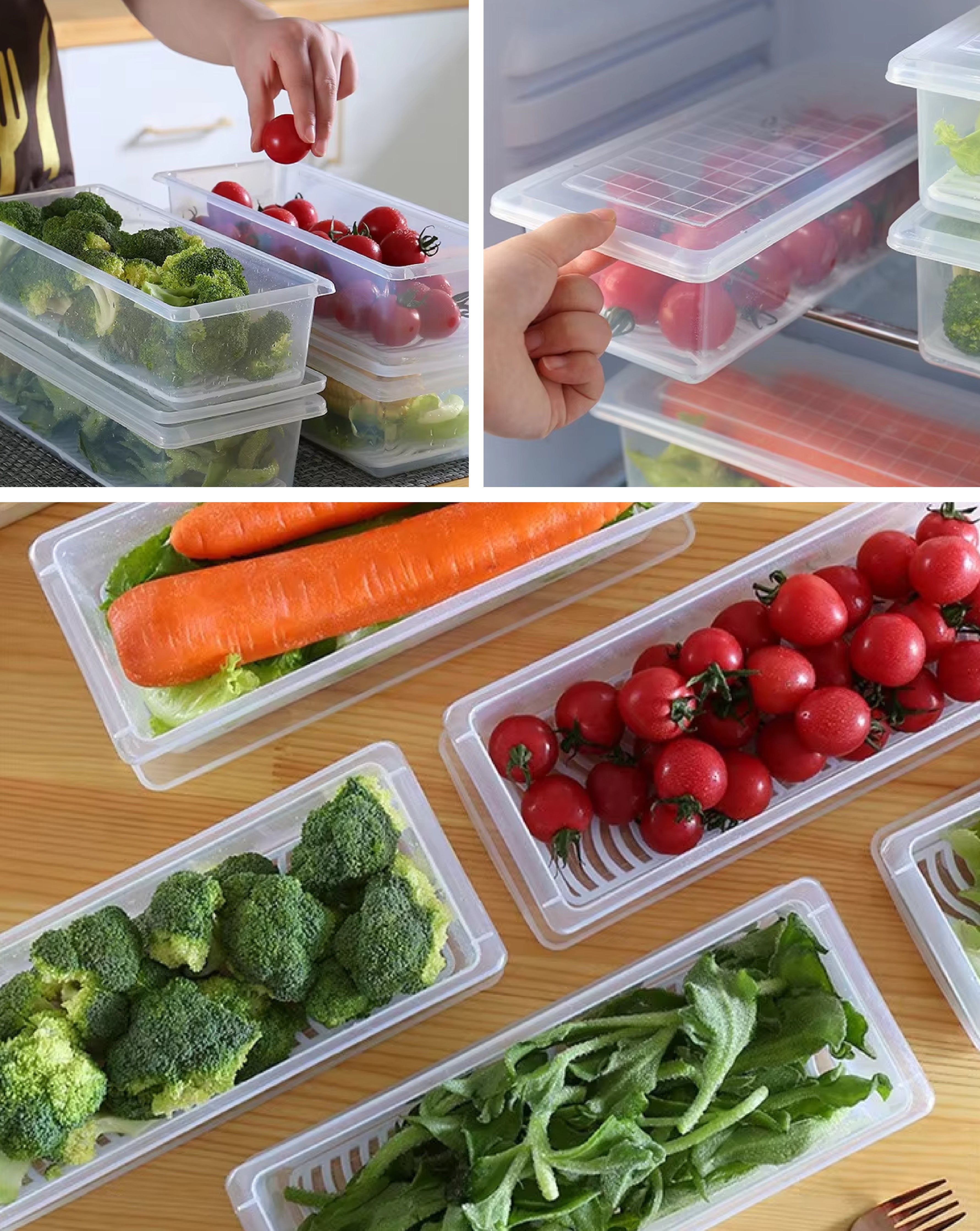 Streamline your kitchen and refrigerator organization with these versatile Plastic Fridge Organizers Storage Boxes. Designed for multi-purpose use, these freezer-safe containers are perfect for storing vegetables, fruits, meat, fish, eggs, dry fruits, and leftovers. With an airtight lid, they prevent odors and maintain freshness, making them an essential addition to any kitchen.